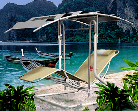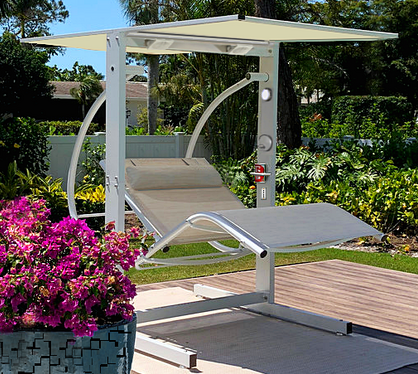 Multi-configuration RTA pendulum inspired glider chaise/hammock. Deployable solar canopy with LED lighting & 30 degree front/back tilt.