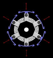 Slats self-adjust with 360 degrees of independent in / out movement eliminating fabric stress waves and wrinkles along the entire length of a bowing or distorted active roller.
