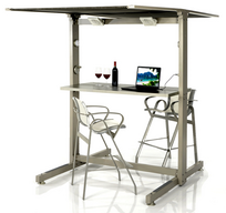 Perpetual motion inspired solar/battery powered duel utility glider/environment. LED lighting, mobile ports, fans, speakers, and solar deployable canopy.