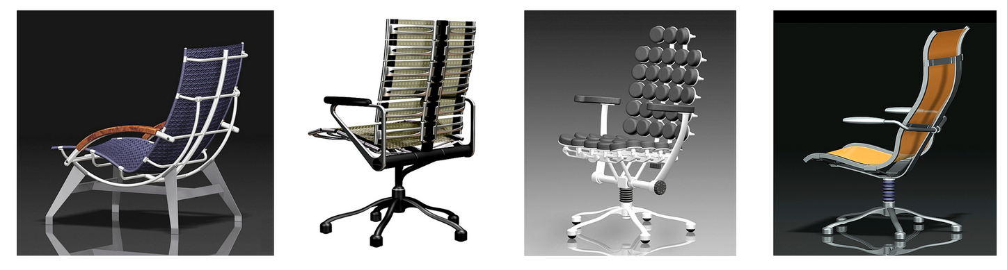 The products below represent a partial collection of my multi-environment, diverse stylistic, and DFM technologies for seating and casegoods.